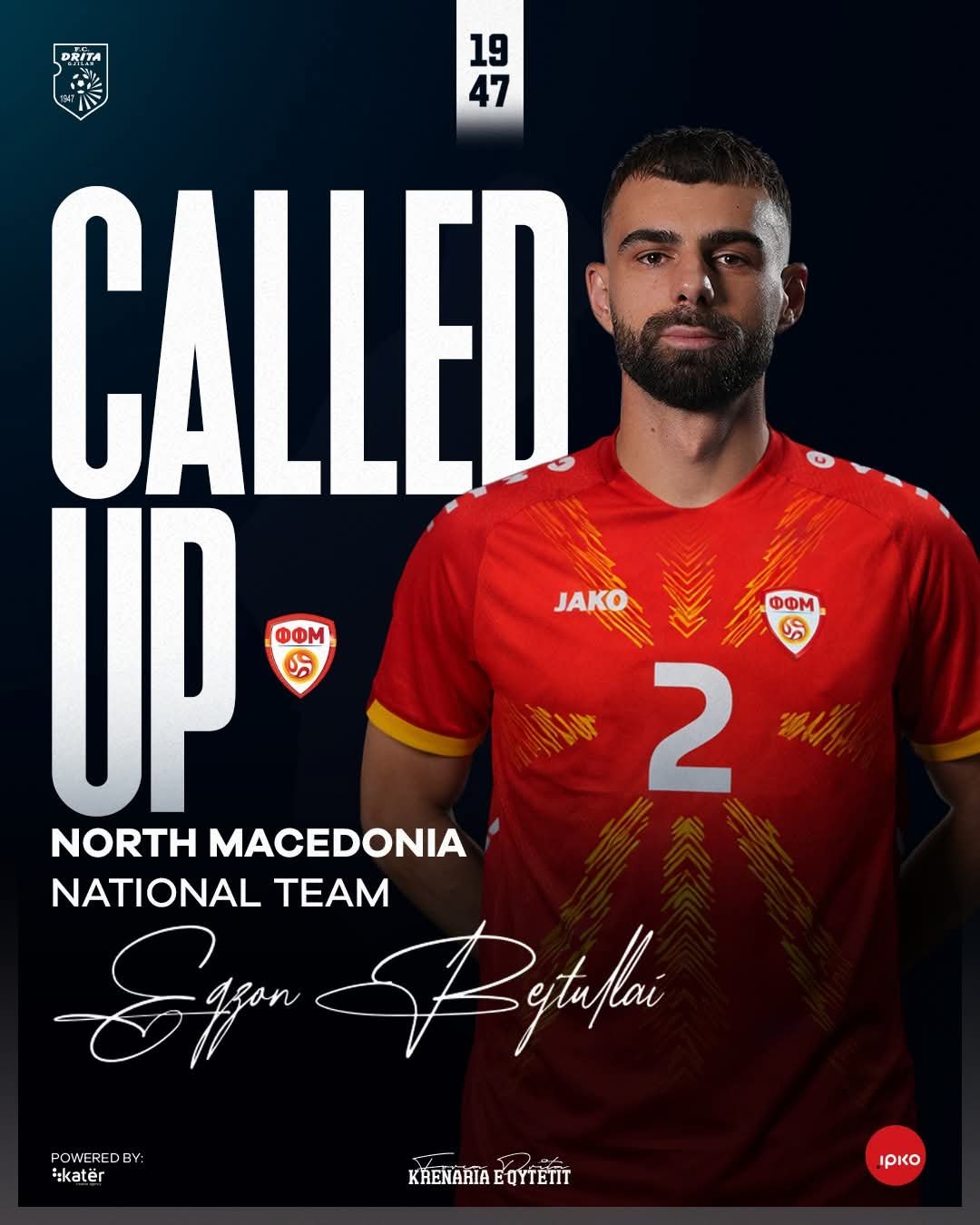 Mbrojtësi qendror i FC Drita, Egzon Bejtullai, ka marrë ftesë nga Kombëtarja e Maqedonisë së Veriut.