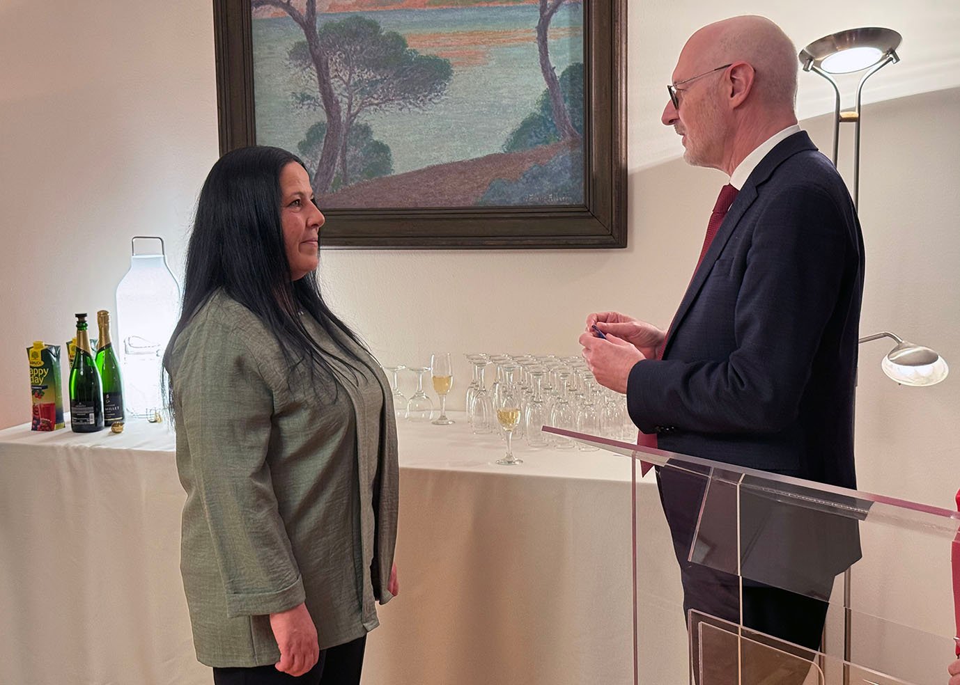 Medalja iu dorëzua nga Ambasadori i Francës në Kosovë, Olivier Guérot, duke vlerësuar kontributin e vazhdueshëm të Kadrije Kajtazit në këtë institucion diplomatik, ku ajo ka shërbyer me devotshmëri dhe integritet për një periudhë të gjatë.