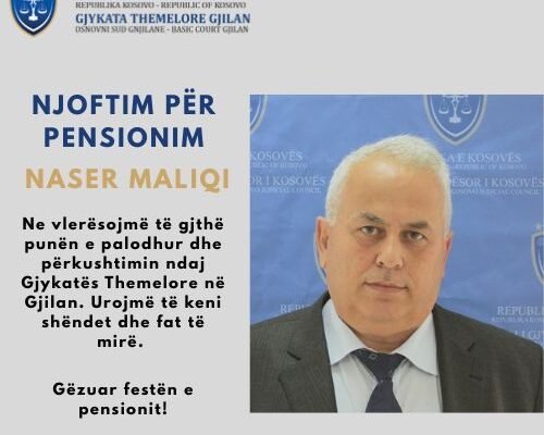 Pensionohet gjyqtari Naser Maliqi nga Gjykata Themelore në Gjilan