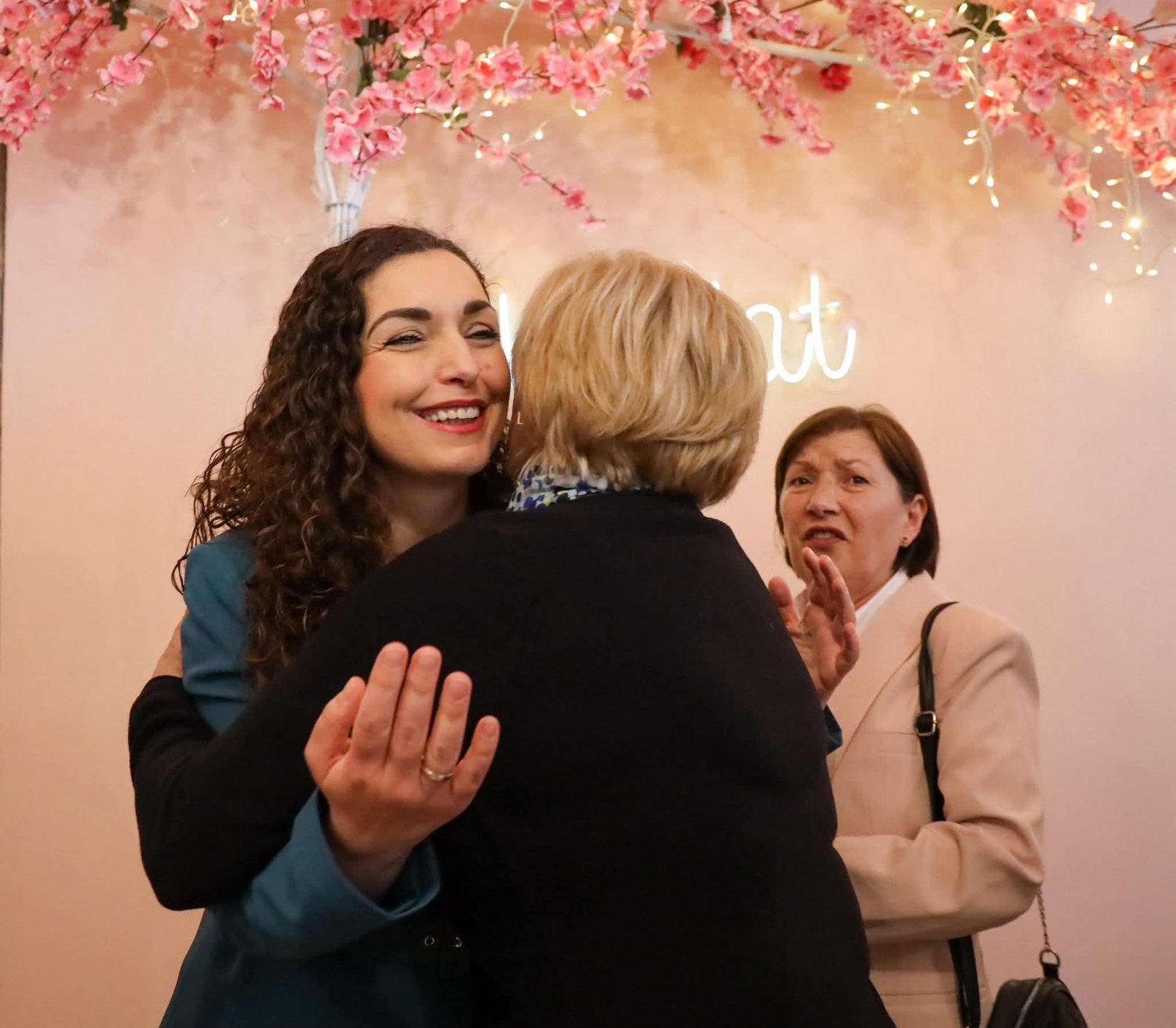 Ajo zhvilloi një bashkëbisedim në restaurantin Nanat, një biznes i udhëhequr nga Qëndresa dhe Liria, duke vlerësuar rolin e grave në zhvillimin e shoqërisë.