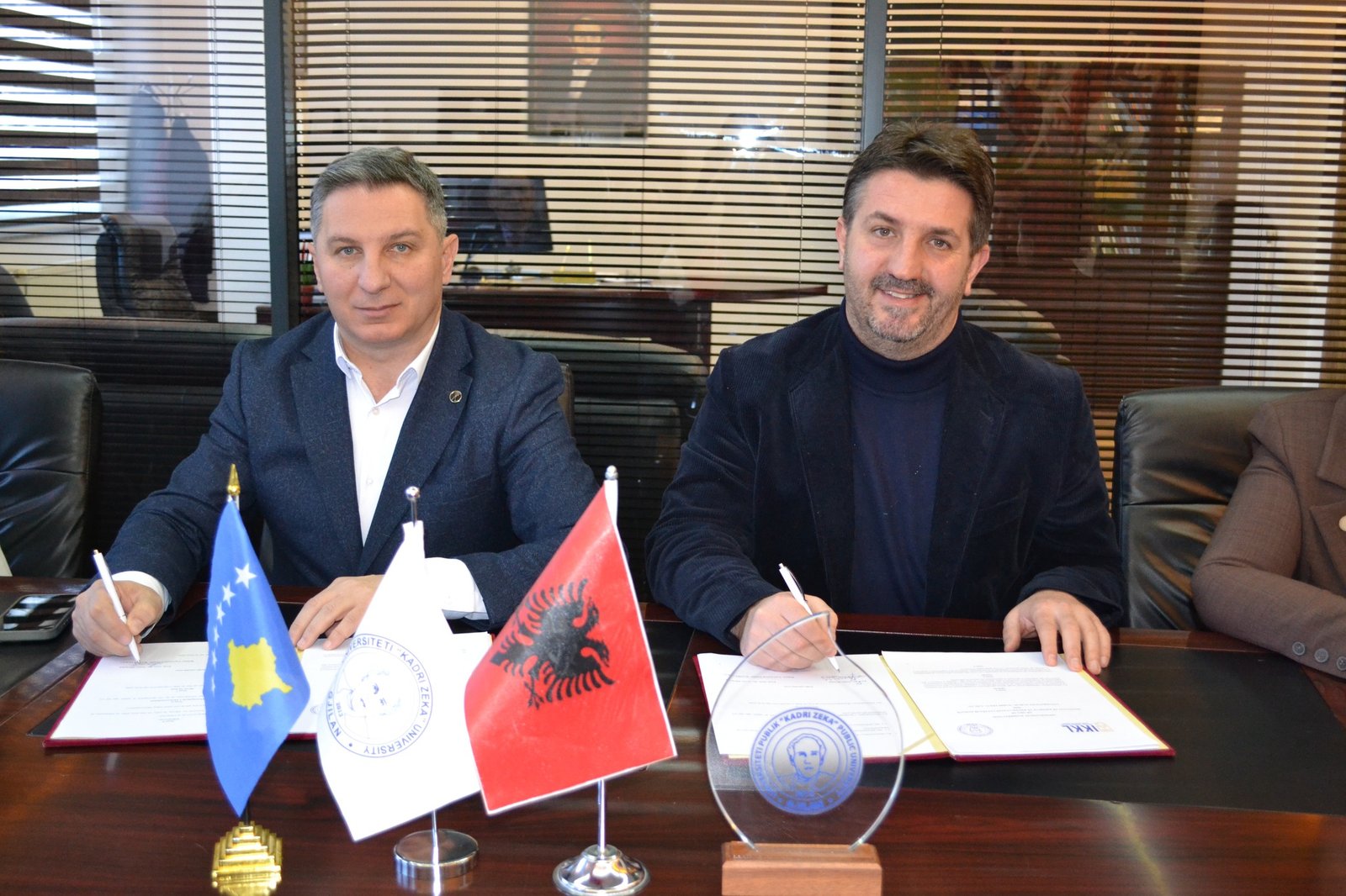 Memorandumi u nënshkrua nga Rektori i Universitetit Publik “Kadri Zeka”, Prof. Asoc. Dr. Artan Dërmaku, dhe Drejtori Ekzekutiv i Institutit të Krimeve të Kryera gjatë Luftës në Kosovë, Prof. Dr. Atdhe Hetemi.